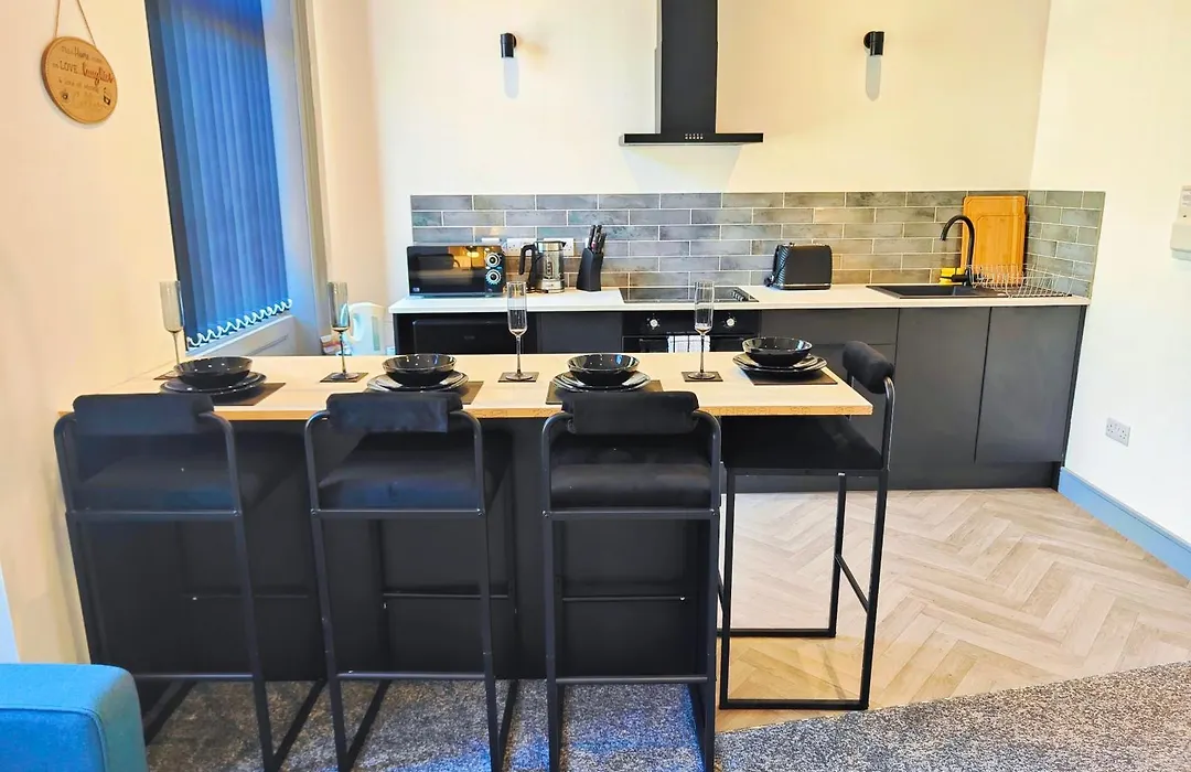 The apartment includes self-catering facilities, such as a fully furnished kitchen with an electric kettle, a refrigerator, and kitchenware. The 2-bedroom apartment lies just near Blackpool North train station.